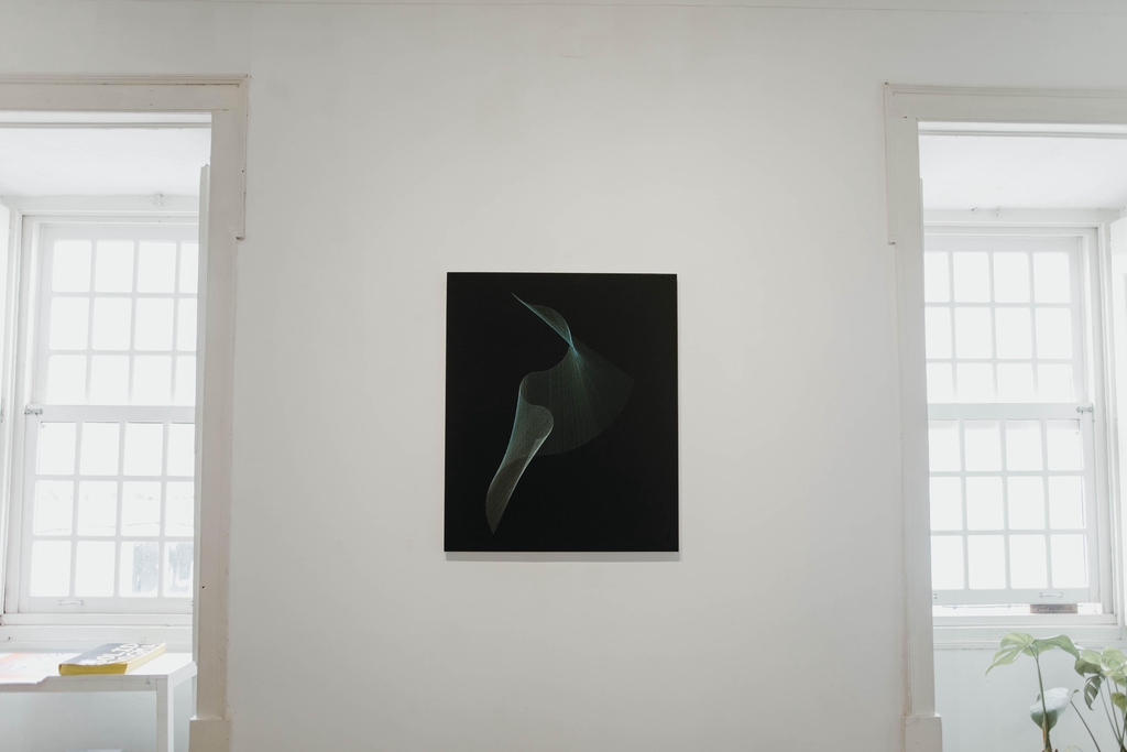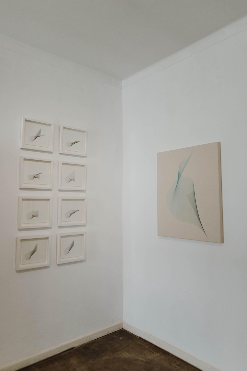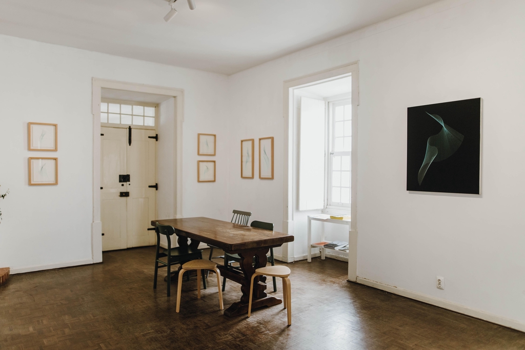 “Going beyond the limits of drawing, the thread and the needle are, for Catarina Rosa, a more concrete way of biting into the paper, and of inscribing the physical trace of her impulses, channeled in a constructed and poetic gesture. Constructed, because the artist follows precise rules, technical and compositional “constraints” that she assumes as creative pretexts; poetic, because playing with these same restrictions, she composes her own sensitive universe, in which the delicate forms reveal infinite perspectives and depth. In this recent series, the spiral motif, drawing ever different volutes, and potentially infinite, around a single central axis, appears to be a perfect “creative constraint”. Sensible metaphor of a perpetual motion, powerful but orderly, entropic but measured. Constant force that disperses and gathers, the spiral shapes this complex and necessary ambivalence, always at the center of Catarina Rosa’s work: on the one hand, the impetuous instinct that animates her will to create - like a “cyclic wave that involves [her] senses” - on the other hand, the desire for clarity, even “perfection”, which she entrusts to gesture’s rigor and geometry’s wisdom. Following the rhythm of her own breathing, Catarina Rosa alternately explores the centrifugal movement of the spiral (forms grow and open: inspiration, expansion, elevation) and their centripetal motus (they shrink and fold in on themselves: expiration, contraction, fall). The color, reduced to a fine range of greens, from the lightest to the deeper, sustains the range of motion, while underlining a certain transformative power. In this way, letting herself be carried away by the whirlwind of her spirals is, for the artist, a form to move forward and transform herself, as she “looks inward” and tries to “find her own center”. In fact, it is only through her successive windings that the spiral’s axis finally becomes visible and it is only in movement that equilibrium can be achieved. And by continuing to turn, we can move further away from the axis, as when the spiral splits on the same sheet and we observe, from the outside, the encounter between several dynamic universes, each one unique and singular. However, on the next turn, we may get so close that we can lose sight of the bigger picture, splitting the spiral into segments. Paradoxically, these “close ups”, still, instant images, in the simplistic order that rules the complex movement, threaten the very disappearance of the spiral, like a process, by definition, evolutionary. And yet these space-time fractions - however imperfect, incomplete and asymmetrical - seem to forever crystallize the profound beauty of the whole.”