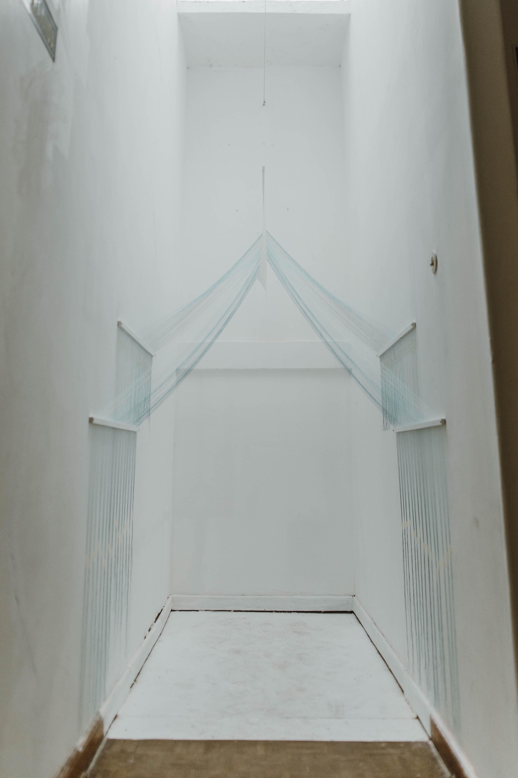 Catarina Rosa was born in Faro in 1980. Graduated in Fine Arts, from the Faculty of Fine Arts of Lisbon, in 2004. Between 2003/04 she obtained an Erasmus scholarship, settling in Valencia (Spain), where she was part of the performance course taught by the performer and sound poet Bartolomé Ferrando. Her personal and artistic journey continued through Brussels, Paris, arriving in 2016 at Montreal (Canada), where she has lived and worked ever since. The artist has exhibited in different countries and participated in art fairs such as: Pinta (New York), Arteba (Buenos Aires), Art Paris Art Fair and Bienvenue Art Fair (Paris). She was a finalist for Celeste Prize 2012 (Rome), where she won second prize in the category of painting and drawing. Throughout her artistic career she held several individual and group exhibitions, from which stand out “Réel, Virtuel, Réel”, with the kinetic artist Elias Crespin, at the Musée en Herbe, Paris (2013), the solo exhibition “Trajectory of a Volume”, at the Consulate of Portugal, Paris (2015) and “Le Silence du Mouvement”, at the Pavillon Carré de Baudouin, Paris (2019). She is represented by the Eko Sato Gallery in Paris. “Follow the thread, always.” In Catarina Rosa’s work, polymorphic and open to experimentation, sewing asserted itself, in 2004, as her fundamental practice. Since then, this has been her fundamental tool for creation. From the thread to the needle, the artist follows the trajectory of her gesture, establishing a sensitive and intimate relationship with this extended body instrument. The “artist’s body”, as a performer, is a place in itself, this space where the interior and exterior coexists, and from which a dialogue in continuous transformation springs. From this dialogue, structures that are built in space by the accumulation of lines and dots are revealed, forming geometric compositions that she describes as “drawings, microscopic visions of sensations, of this throbbing that is life.”