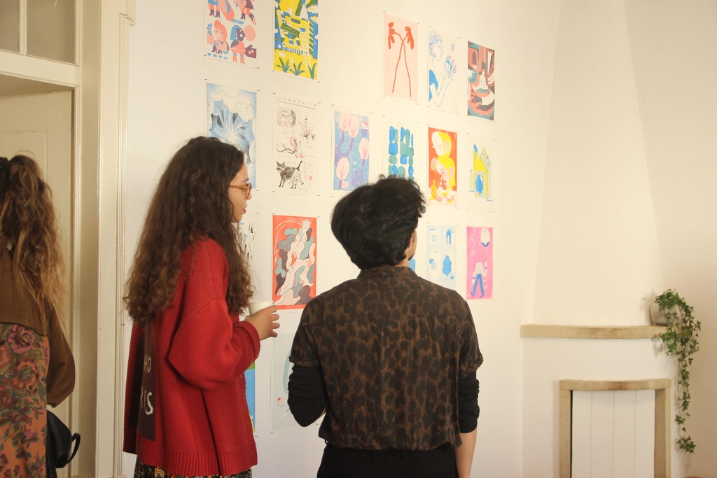 Surroundings presents itself as a rich and diverse collection that reflects what is being created today in drawing and illustration. Each artist had the opportunity to materialize, in a two‑color risograph print, their understanding of space, environment, and memory — a vision that is both unique and personal.