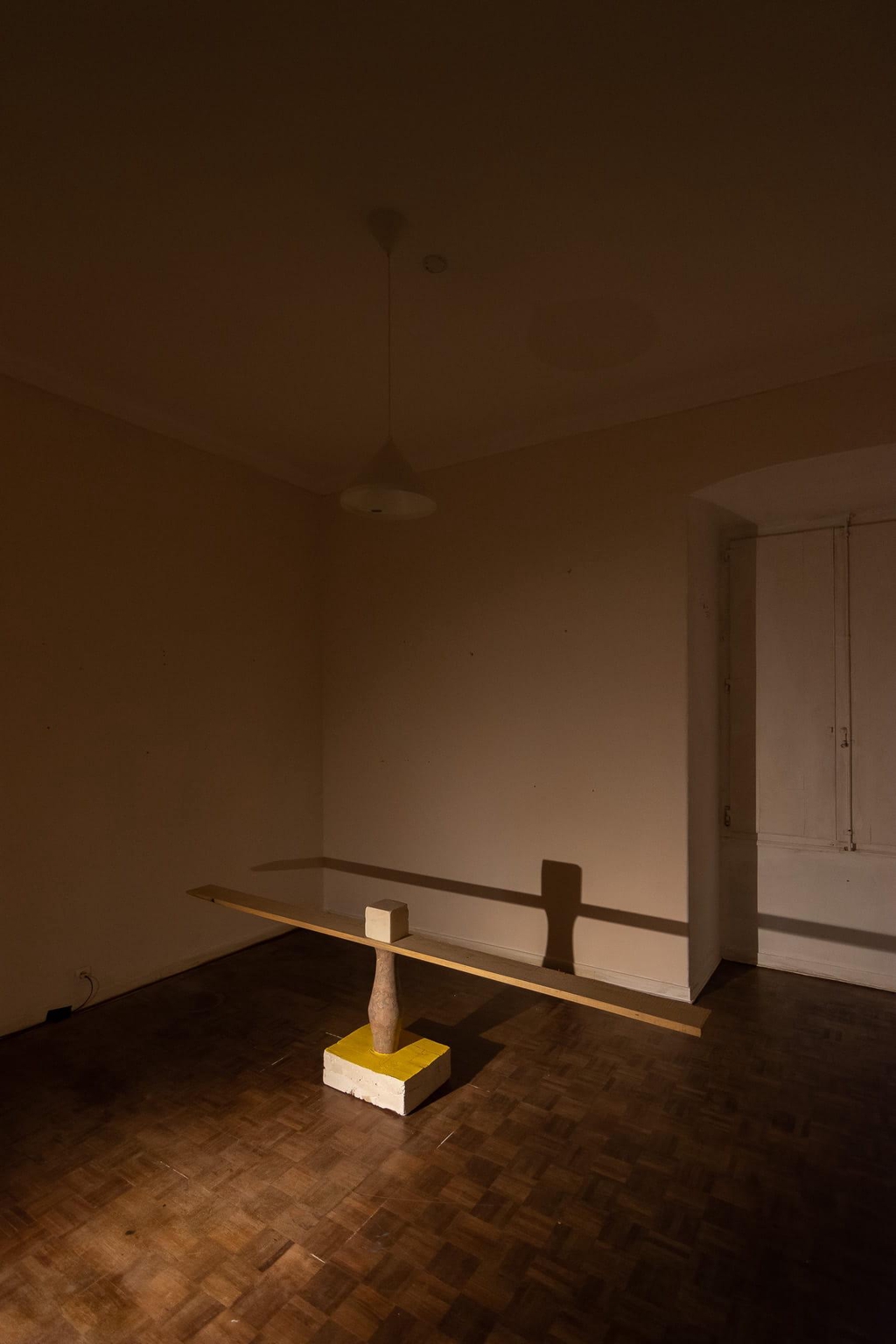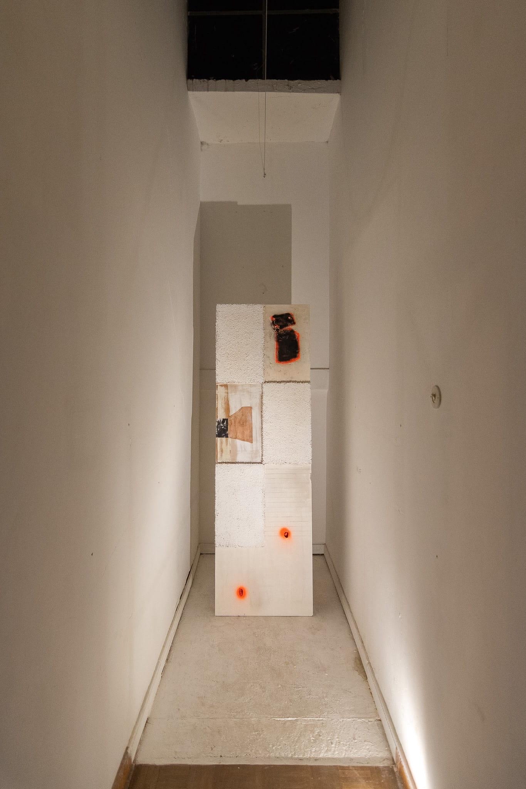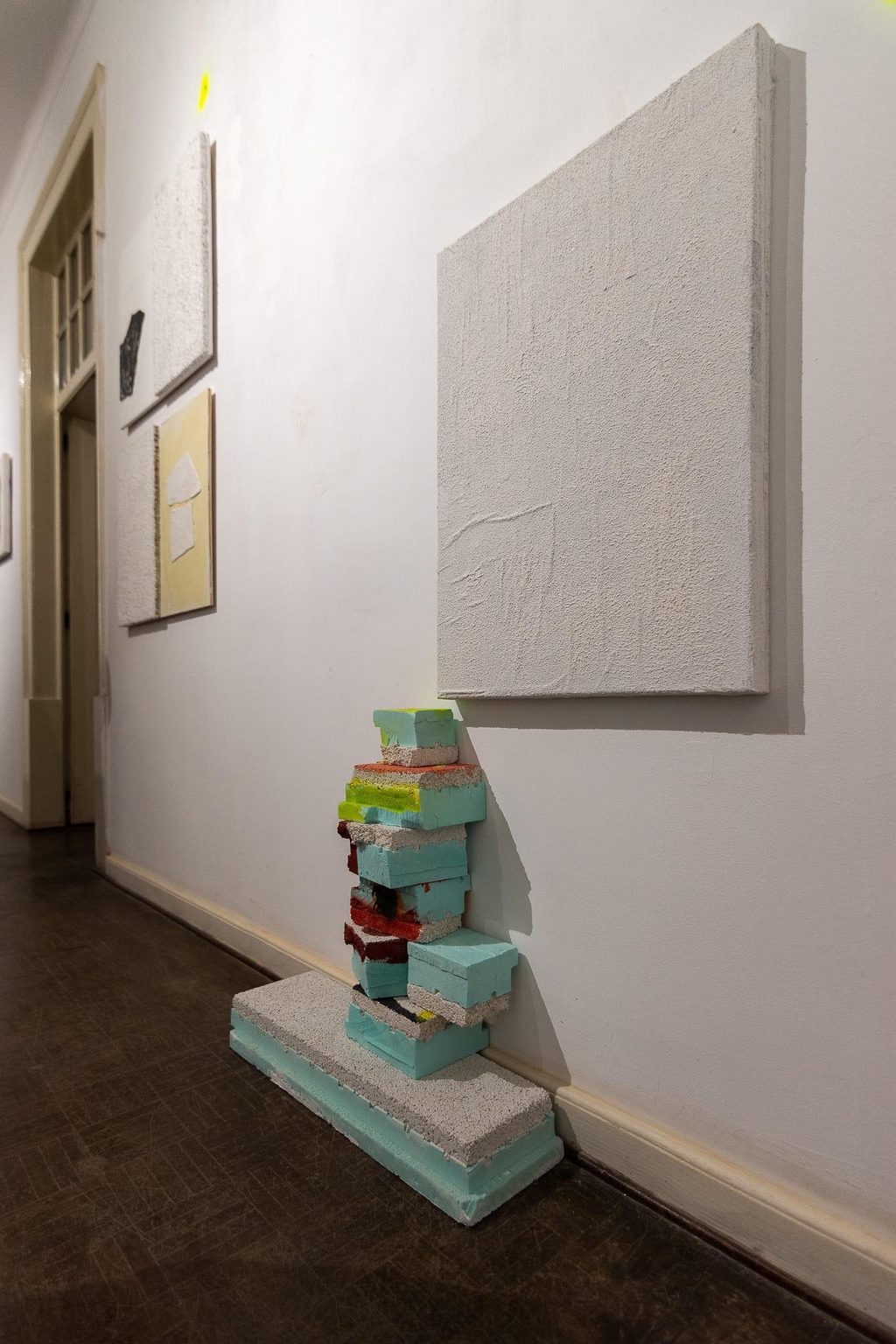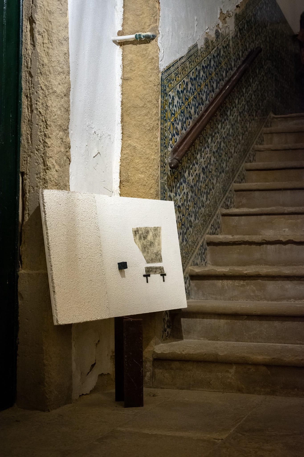 “Constructions in the Sand" is a self-explanatory title, as literally the texture/material/structure trilogy is very strong. Construction materials are used, namely wooden structures, plasters, cements, varnishes, sand paints and wall paints. Creative, simple and carefree freedom is highly valued and put into practice, this childish and naturally expressive attitude of those who build in sand as a child is even structural. There are memory supports and professional factors, which are also fundamental for the achievement and evolution of the work of this duo of artists, namely Vargas being an architect in Kuwait, where he absorbs the culture and colours, and Cruzes having a background in painting, but also in communication design and technology. Both have deep memory ties with the Algarve culture and, although often “invisible”, structuring elements from the South are used, from its architecture, from its heat and, inevitably, from its Arab heritage. Before any interpretation, in the work of Cruzes + Vargas one feels intuition, the game of imagination and the pleasure of experimentation, the creative energy that is born from dialogue, polyphony and the path they make between ideas.