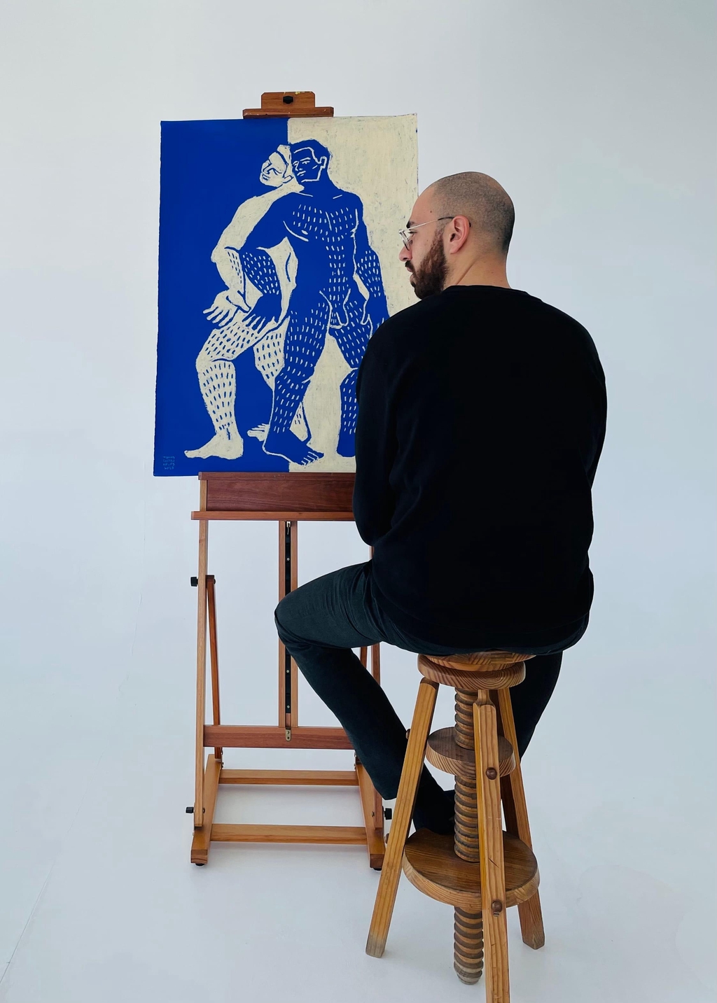 The set of pieces made for the Pride celebration seek to be like a place at the table. The chairs that mark the pieces symbolize this abstract place, but also the language on which we rely to formulate our speech. They are an opportunity for dialogue and a call for communication. The bodies that contort themselves as ideas interact with each other (and with you) to form larger ideas. They are compositions of movement and rigidity that seek to naturalize speech, the body, and nakedness. The empty, abstract space in which the characters are located becomes part of their contours, and a defining connection is created between the full and the empty. The difficult positions characterize the difficulty of expression and even of fitting the LGBTQ community into a normative dynamic. But the body adapts and learns to be otherwise. These bodies find comfort in discomfort. Dialogue presupposes meeting and listening, in a step forward that moves beyond conflict and seeks something better. It presupposes attention and conversation. It presupposes different points of view and looking forward, toward whatever comes next. These are bodies that sit, waiting. That remain available. That long for change. It comes next.